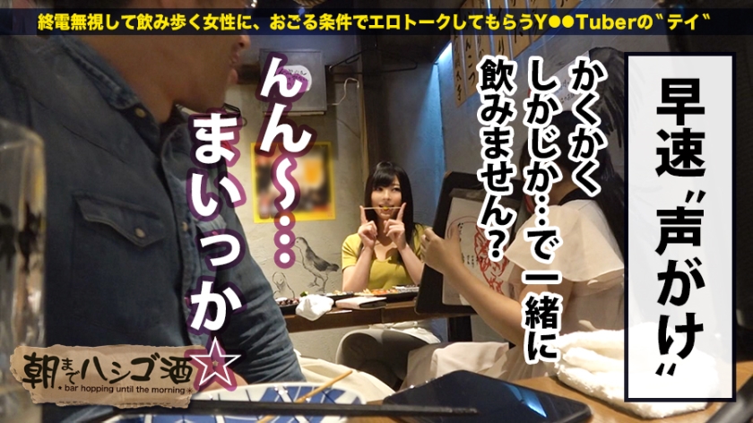 居酒屋で飲み続ける女性の「悩み」と「性」に迫り、そのままお持ち帰りを狙うリアル追求型企画。※食事中の視聴は推奨できないほどの内容を含みます。舞台は浜松町。1軒目の誘いは不発に終わりますが、2軒目で出会ったアズサちゃんのキャラクターが爆発します。下ネタは大歓迎、さらに「痣ができるほど攻められたい」という特殊な性癖まで告白。その危ういほどのハイテンションに押されつつ、一行は次のお店へ。お酒が進むにつれ、話題は「綺麗な夜景の下でのセックス」という具体的な願望に変わり、すぐさまホテルへ。友人がリタイアする中、高層階の窓際で濃厚な愛欲に溺れます。一、二度の絶頂では満足せず、貪欲に快楽を求め続ける彼女。床を水浸しにするほどの激しい潮吹きと、死を予感させるほどの連続絶頂を経て、朝まで交わり続けました。彼女の深い業を目の当たりにし、今の生活よりもAV女優としての素質があるのではないかと確信させる結果となりました。