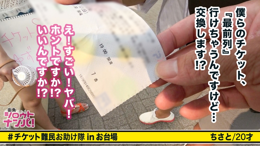 イベント当日に会場へ駆けつけるチケット難民。彼女たちに「チケットの譲渡」を持ちかけ、どこまで大胆な要求に応じるかを探るのが今回の主旨です。舞台は最高気温40度を記録したアイドルフェスの現場。ようやく発見したターゲットは、アイドル級の容姿を持つ20歳のちさとさんでした。アイスクリーム店勤務という彼女の清純な外見からは想像もつかない展開が、個室移動後に待ち受けます。日焼け止めの手伝いをきっかけに、愛撫は次第に執拗さを増し、彼女も官能的な声を漏らし始めます。シャワールームやベッドでの激しいピストン、そして椅子や床を駆使した体位の変化に、彼女は理性を失い、ライブグッズを振り回しながら狂喜。チケットへの執着が、剥き出しの性愛へと変貌していく様子を克明に描写します。