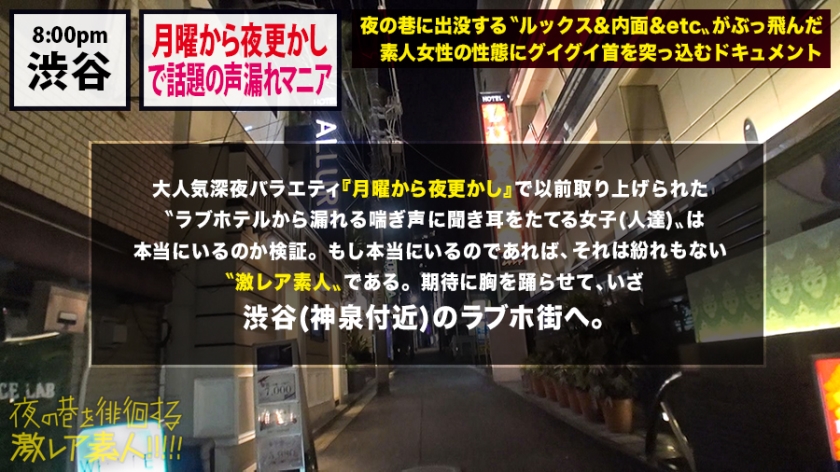 渋谷の夜、普通ではない感性を持つ女性の性を暴くドキュメンタリー。他人の性音を愛する「喘ぎ声マニア」の女性を発見し、その異様な生態に密着します。補聴器を手にホテルをはしごする彼女と、SM専門ラブホへ。プレイは電マによる着衣愛撫から加速し、下着の中への指入れでお漏らしと潮吹きを誘発。拘束椅子に舞台を移すと、パンストを破る野性的な指愛撫とキスで彼女を翻弄します。正常位や立ちバック、背面座位での結合中もクリトリスに電マを当て続け、激しい喘ぎとともに何度も潮を吹かせます。フェラやイラマチオ、玉舐めといった奉仕を経て、再び正常位でお漏らしを伴う絶頂へ。最後は口元に精液をぶちまけ、お掃除フェラで彼女の性態を完結させる衝撃の展開です。